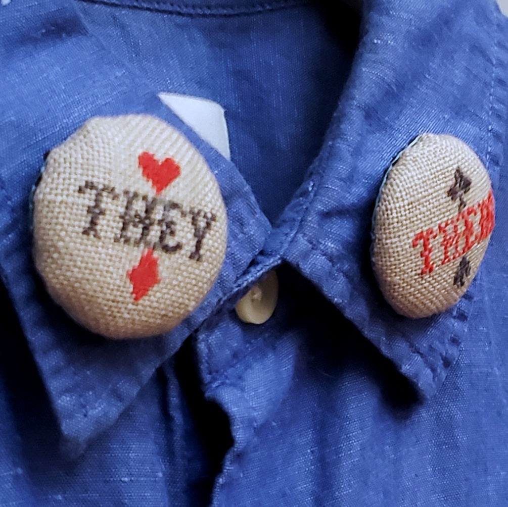 I think that in a couple of years not introducing yourself with your pronouns in going to be considered rude. I'm trying to do that when I introduce myself, and using pronoun pins is a way to do it without even having to talk to people. I hope you make some of those for yourself and others, and help make this just a way we present ourselves to the world.